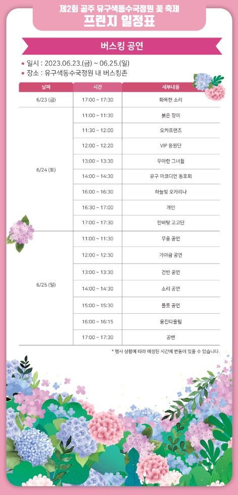2. 공주 유구색동수국정원 꽃 축제 주요 프로그램