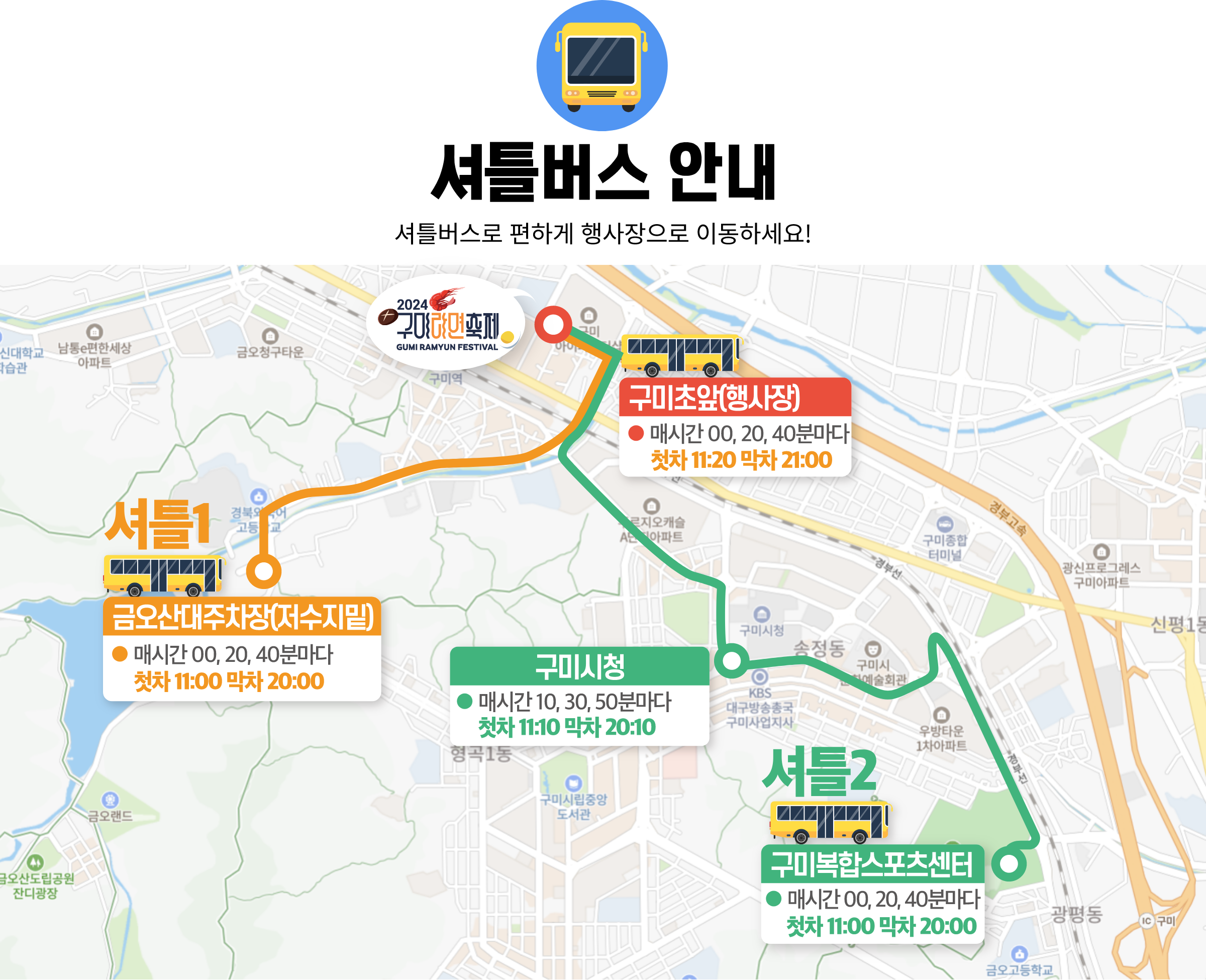 2024년 구미라면 축제는 11월 1일부터 11월 3일까지 3일간 구미시 일대에서 진행됩니다. 매년 많은 관람객들이 방문하는 이 축제는 지역 주민들과 관광객들에게 라면의 매력을 알리고, 지역 경제에 기여하는 중요한 행사입니다. 축제는 매일 오전 11시부터 오후 8시까지 운영되며, 다양한 프로그램과 부스가 마련되어 있어 가족 단위 방문객들에게도 적합한 행사입니다.
