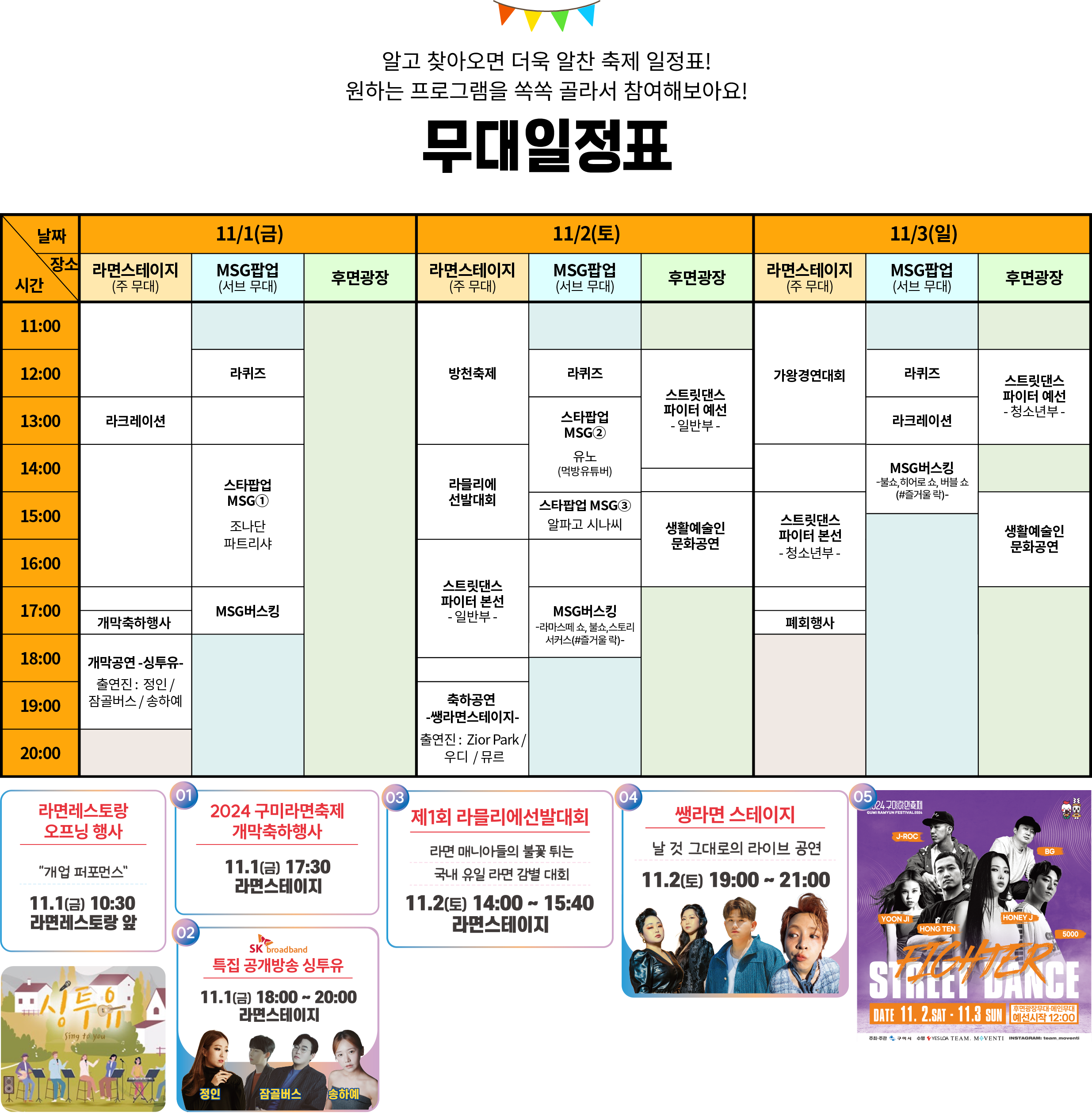 구미라면 축제에서는 라면을 주제로 한 다양한 프로그램이 준비되어 있습니다.