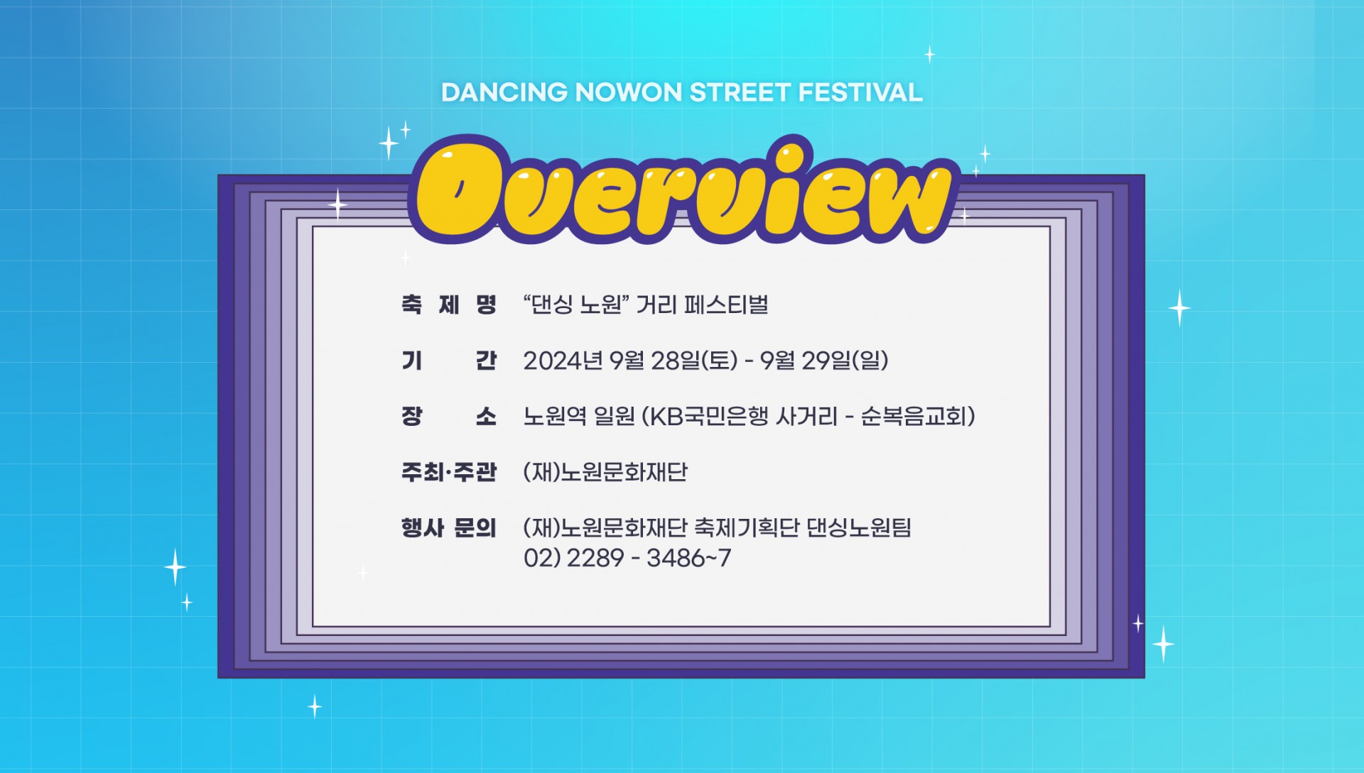 댄싱노원 거리페스티벌은 예술과 문화가 어우러지는 특별한 경험을 제공합니다. 다양한 프로그램과 공연을 통해 모든 연령층이 함께 즐길 수 있는 이 축제는, 지역 사회의 화합과 문화적 교류에 큰 기여를 하고 있습니다. 2024년 가을, 노원구에서 펼쳐질 댄싱노원 거리페스티벌에 많은 관심과 참여를 부탁드립니다. 이 축제를 통해 새로운 문화적 경험을 쌓고, 소중한 추억을 만들어 보세요!
