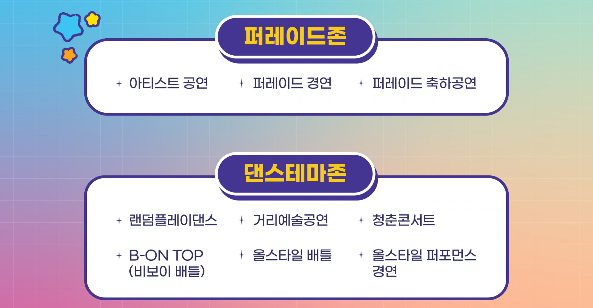 댄싱노원 거리페스티벌의 가장 큰 매력 중 하나는 거리 공연입니다. 지역 아티스트들과 초청된 공연팀들이 펼치는 다양한 거리 공연은 축제의 하이라이트입니다. 댄스, 음악, 마임 등 다양한 장르의 공연이 이어지며, 관객들은 가까이에서 생동감 넘치는 예술을 체험할 수 있습니다. 특히, 유명 댄스 팀과 뮤지션의 특별 공연은 놓치지 말아야 할 부분입니다.