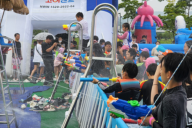 1) 물놀이장 에어바운스, 수중 객석 등 다양한 물놀이 시설이 마련되어 있습니다. 시원한 물놀이로 여름 더위를 날릴 수 있습니다.